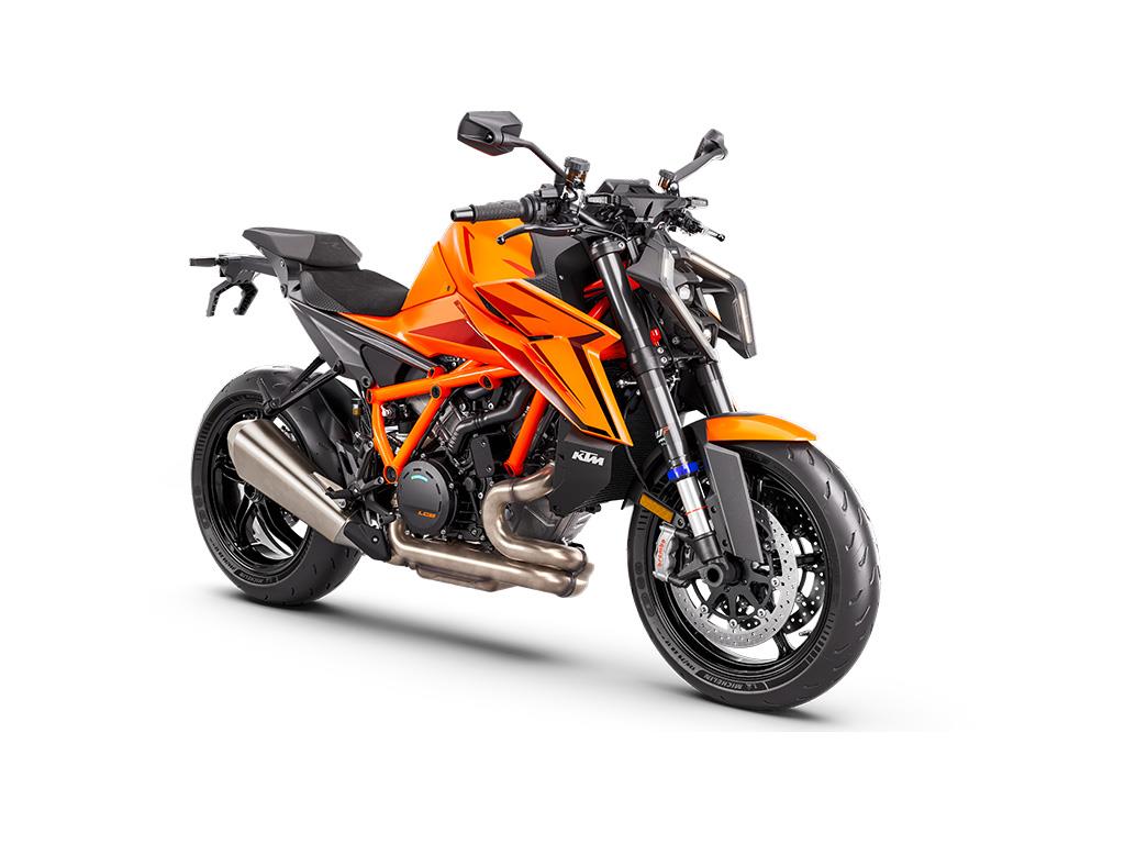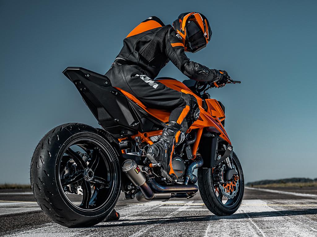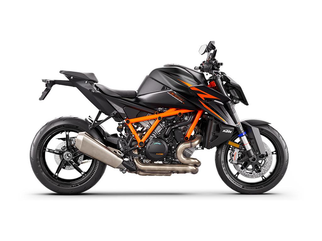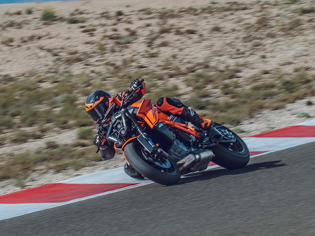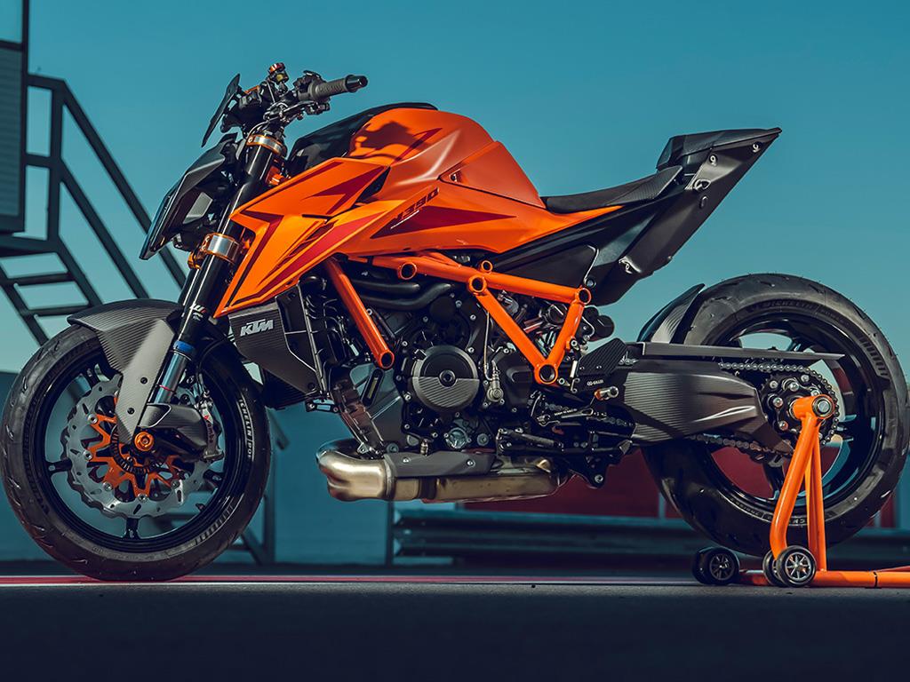 Boasting the latest version of the bellowing LC8 V-twin engine, the KTM 1390 SUPER DUKE R EVO is a torque-hungry, epically powerful, and exciting BEAST. With a near 1:1 power-to-weight ratio, a power output of 190 Hp, and 145 Nm of torque with a READY TO RACE weight of 201 kg - with EURO 5+ homologation - the KTM 1390 SUPER DUKE R EVO turns the planet on its axis rather than riding upon it.