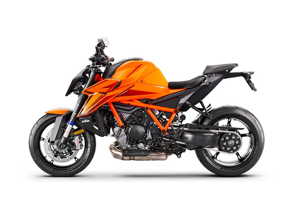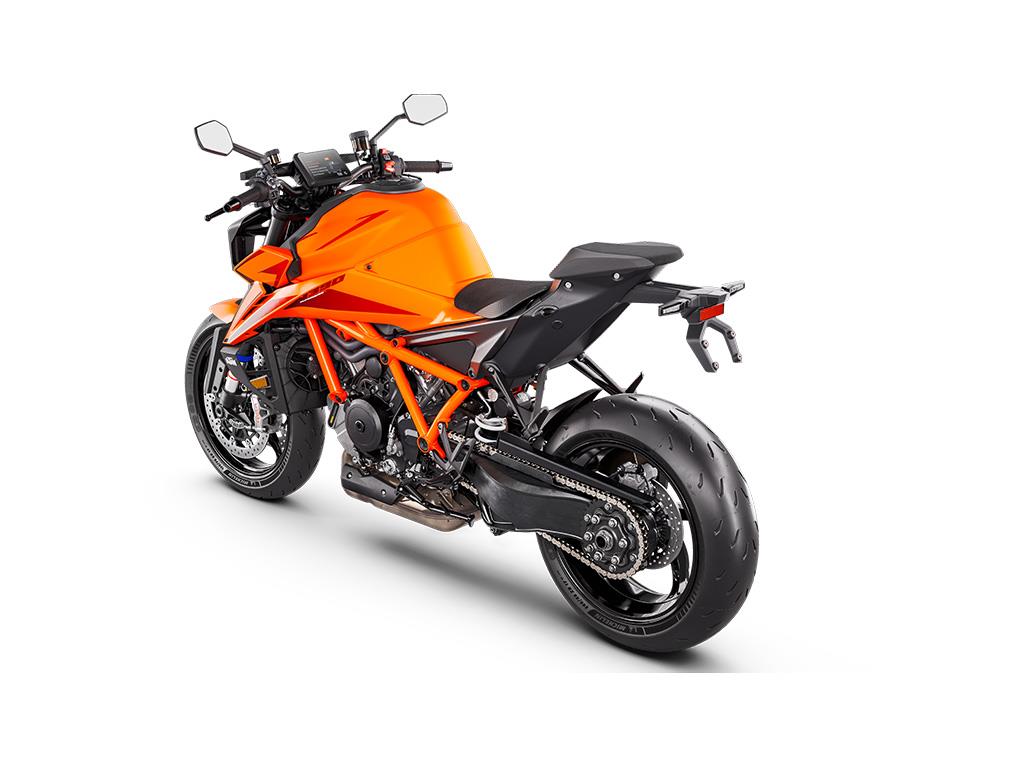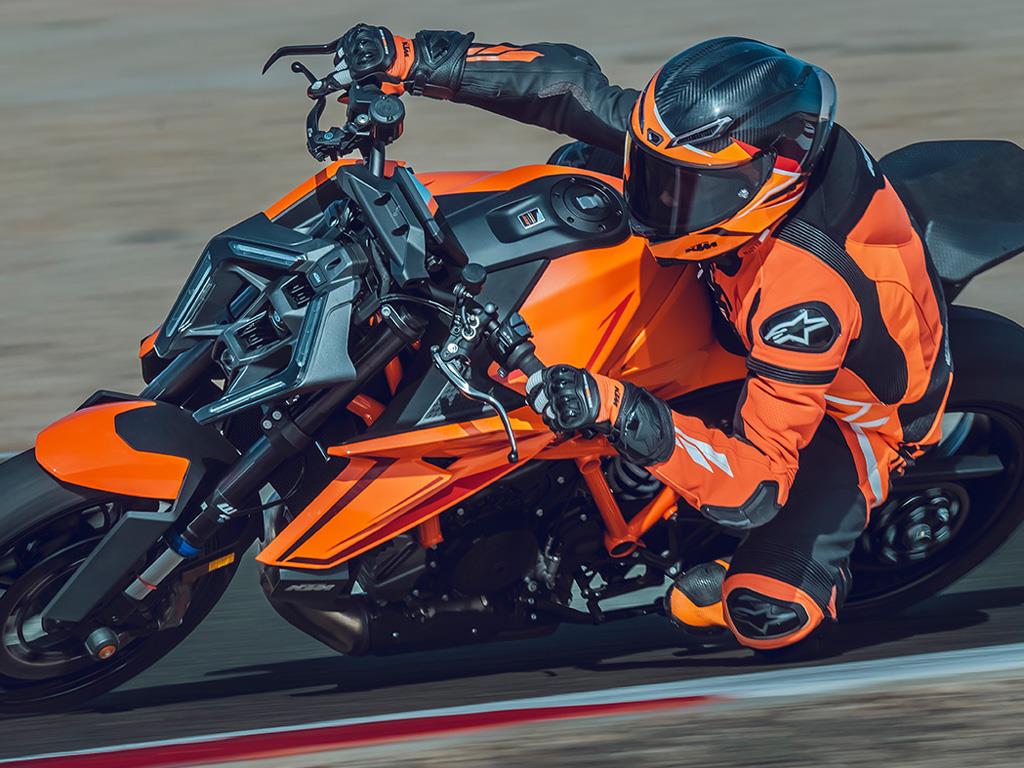 Configurable with up to 5 different ride modes, the KTM 1390 SUPER DUKE R EVO is ready for total domination, With STREET Mode set as the default, riders have full power, traction control, and limited front wheel lift, with an easy throttle response. In a step-up, SPORT Mode sharpens throttle response and allows for some wheel slip, while RAIN Mode does what it says on the box, providing maximum traction control and reduced power to 130 PS. The optional PERFORMANCE and TRACK Modes crank the KTM 1390 SUPER DUKE R EVO to an entirely new sphere, providing enhanced rider customization and unlimited superbike-scaring ability.