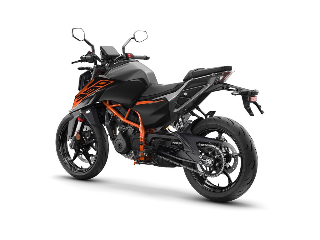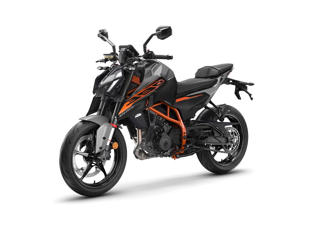" />Embracing its NAKED lineage, the KTM 390 DUKE has no shame in bearing it all. Casting an ever-impressive shadow, bristling with shark-like edges and visible air intakes, the KTM 390 DUKE boasts an aggressive stance. A metal fuel tank, color-injected plastics, and external LED positioning lights complete the package.
