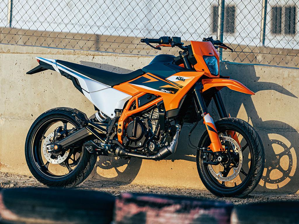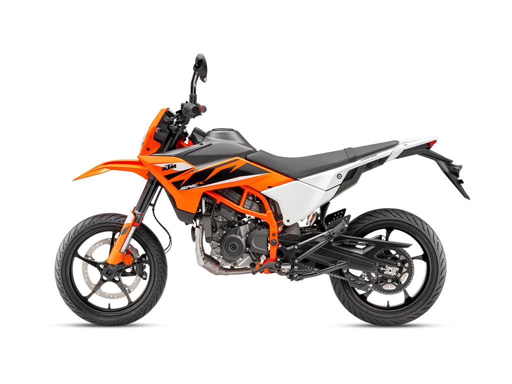 The KTM 125 SMC R comes with premium looks and a striking graphic design as standard. Thanks to top-tier in-mold graphics, it not only looks the part but can also handle anything the outdoors throws at it.