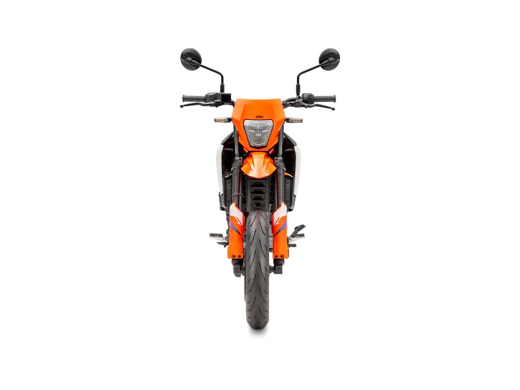With an ergo-triangle inspired by its bigger brother, the KTM 690 SMC R, the KTM 125 SMC R features an aggressive handlebar shape, upright seating angle, and generous space for easy on-bike mobility.
