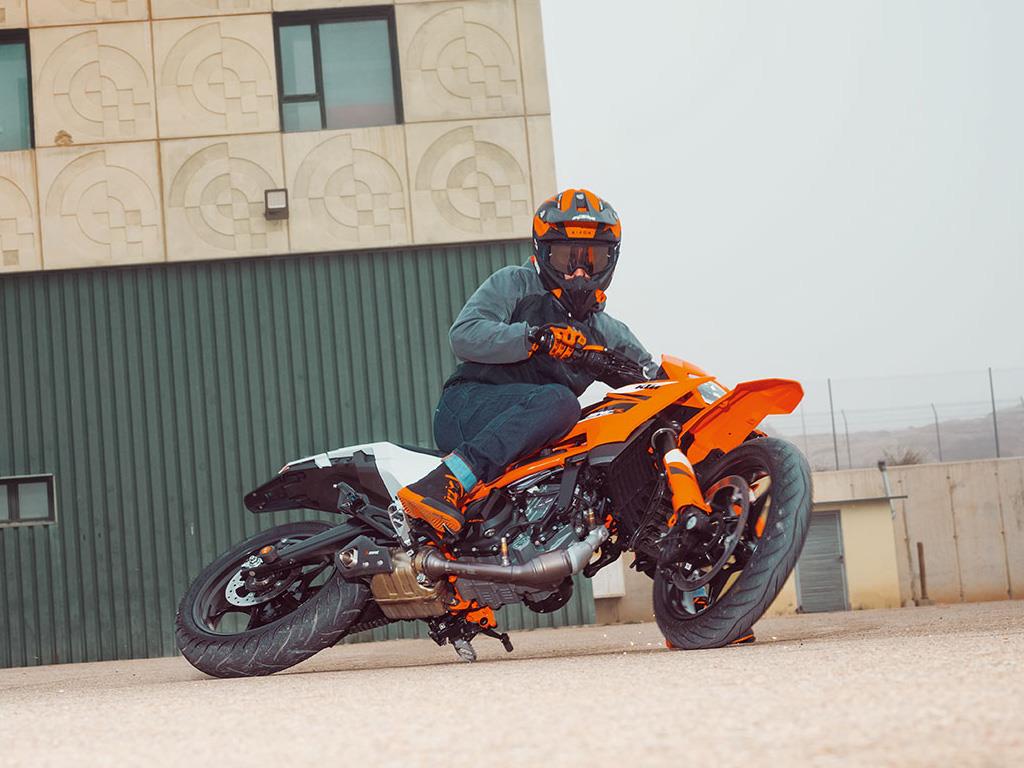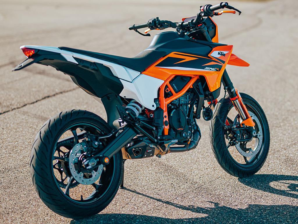 Taking inspiration from the KTM EXC range but with added comfort for longer commutes or trips, the KTM 125 SMC R has a new 860 mm single-piece flat seat design for easy on-board mobility and getting low into an apex.