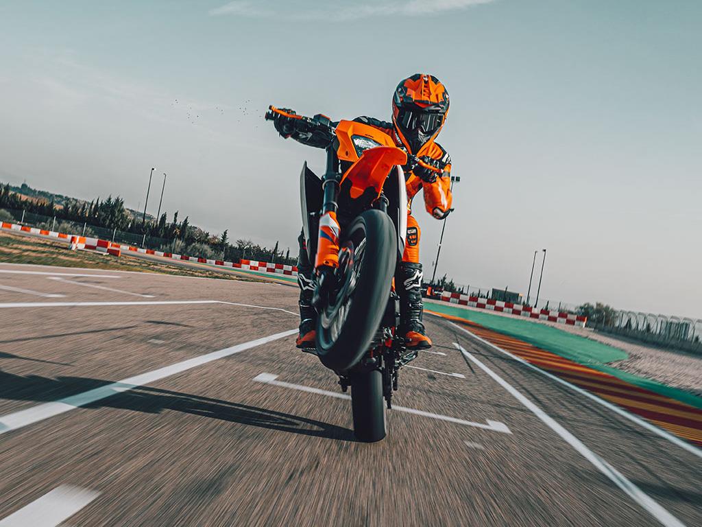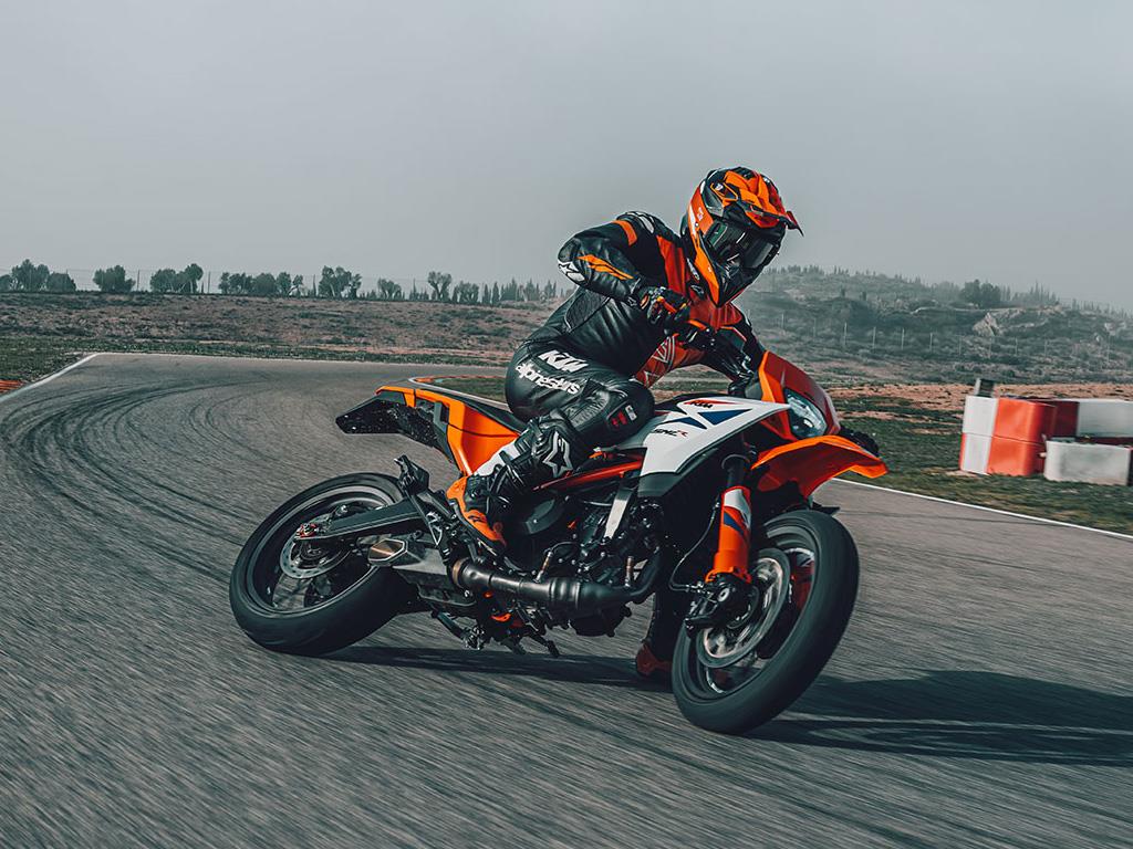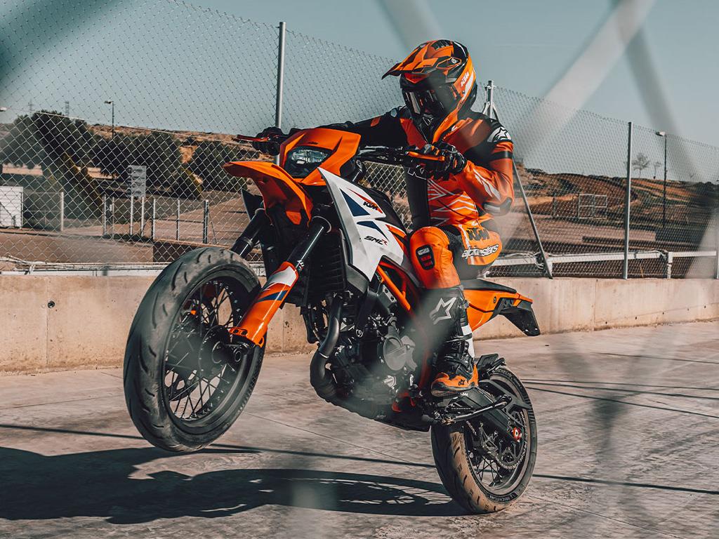 The KTM 390 SMC R comes with premium looks and a striking graphic design as standard. Thanks to top-tier in-mold graphics, it not only looks the part but can also handle anything the outdoors throws at it.